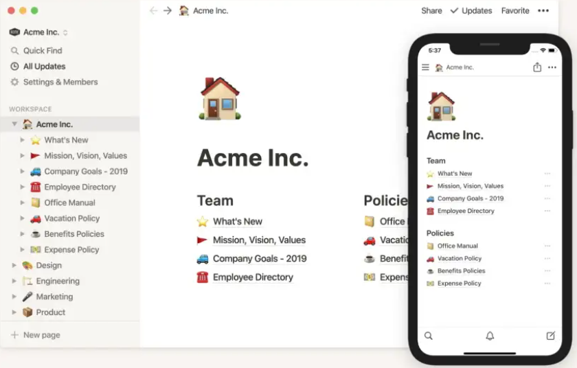 예시 : 노션(notion) 일관적인 포맷으로 메모, 서류를 작성할 수 있도록 도와주는 노션 워드(word) 사용 경험이 있는 사용자라면 누구나 노션을 시작할 수 있을 정도로 직관적이고 심플하다 일관성과 표준 - 노션 화면