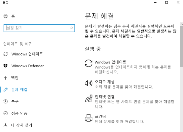예시 : 윈도우 문제 해결 관련된 문제들을 점검하고, 어떻게 해결해야하는지 도움을 제공하는 윈도우 문제 해결 솔루션을 클릭하면 현재 문제의 원인과 어떤 해결이 필요한지 알려준다. 사용자가 스스로 오류를 인식, 진단, 복구하도록 지원 - 윈도우