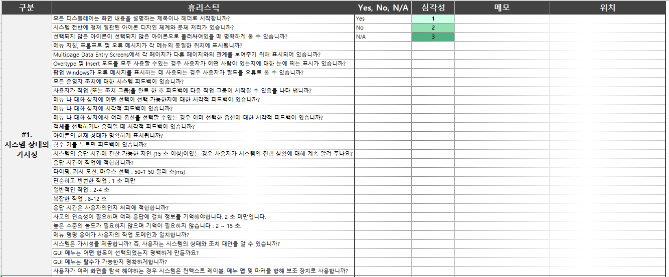 1. 시스템 상태의 가시성(Visibility of system status) 2. 시스템과 현실 세계의 연결성(Match between system and the real world)