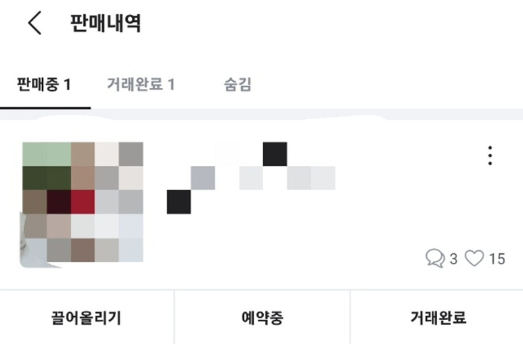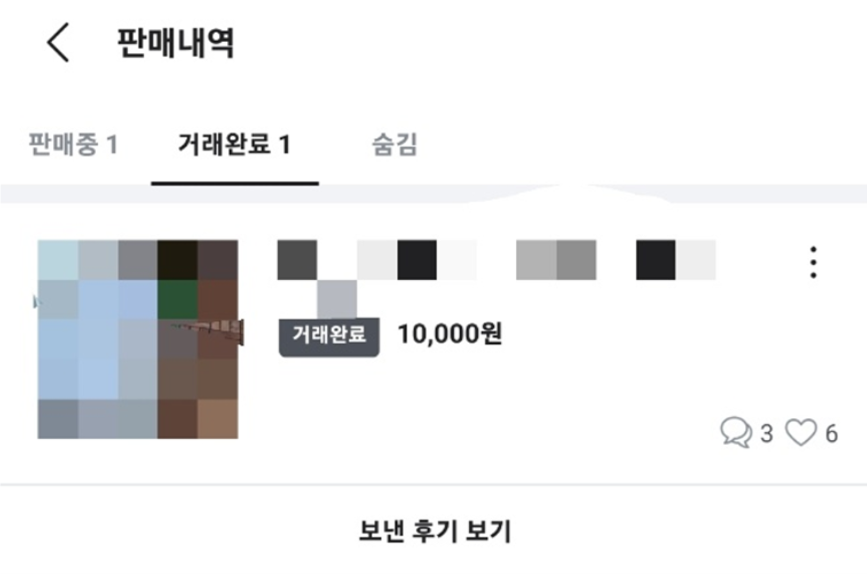 예시 : 당근 마켓 내가 판매하고 있는 상품의 [판매내역] "판매 중"인 상품, "거래 완료" 로 중고 상품의 현재 상황을 정리하여 보여준다