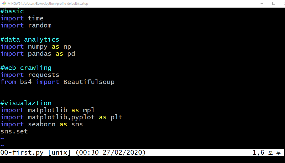 1. 터미널 에서 아래 코드를 치면ipython 디렉토리에프로필 파일 생성합니다.