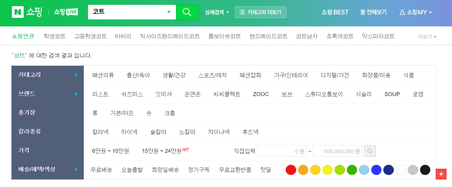 예시 : 네이버 쇼핑 검색 시, 카테고리 노출 원하는 검색어를 입력하면 소비자가 원하는 스타일을 명확히 찾아갈 수 있도록, 카테고리/브랜드/컬러 등 다양한 선택지 옵션을 나열해 준다 기억보다는 인지 - 네이버 쇼핑 화면