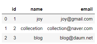 df.loc[2] = {"name":"blog", "email":"blog@daum.net"}