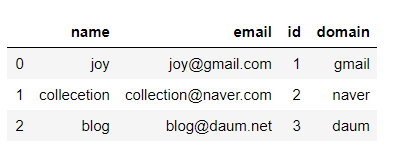 email 컬럼에서 메일의 도메인만 가져와서 새로운 domain 컬럼을 생성해보겠습니다.